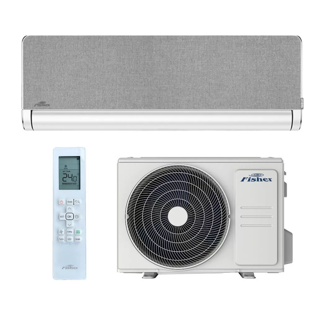 Fisher Art 3,5 kW Fehér – Ezüstszürke textil cserélhető előlappal elegáns megjelenésű, prémium klíma A+++ hűtési és A++ fűtési energiaosztállyal. -25 °C-ig fűt, rendkívül halk (beltéri zajszint akár 19 dB), és beépített Wi-Fi vezérléssel, Cold Plasma ionizátorral, valamint 8 °C-os temperáló fűtéssel gondoskodik az egész éves kényelemről.